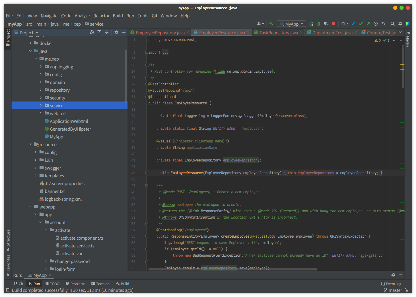 - Jhipster 가 제시한 백엔드와 프런트엔드 구조와 설정들은 (절대적인) 정답은 아니지만 (보편적으로) 이런 식으로 구성하는 것도 가능하구나하며 참조할만한 게 많다.